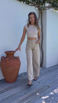 Indiana Stretch Wide Leg Belted Jean ~ Oatmeal