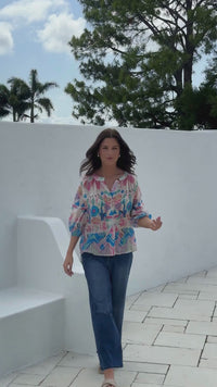 Featuring a flowy fit, soft round neckline, and breezy 3/4 sleeves with elastic cuffs make this a must-have addition to your collection.