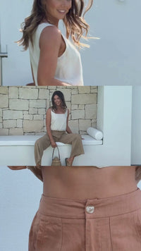 Tobacco Linen Pants by Miss Marlow in Soft Tan