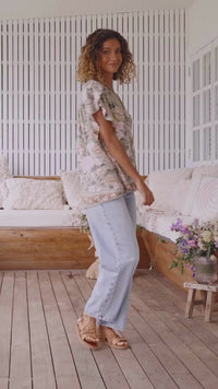 In a beautiful exclusive floral print designed by Australian Artists, in the most romantic exclusive green colour with floral print detailing, this top is a must have for your wardrobe.