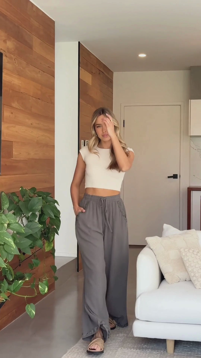 A classic khaki linen and viscose blend fabric makes these pants an absolute must-have for your wardrobe - you'll be sure to get compliments and questions of "where did you get them?" everywhere you go!